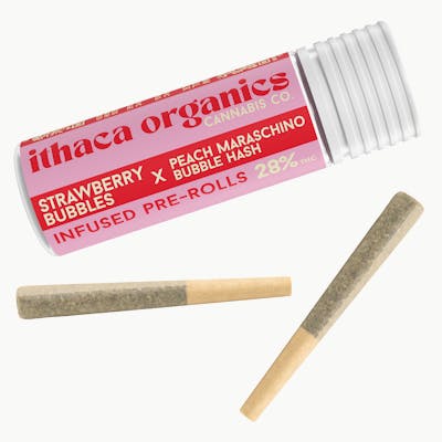 Ithaca Organics | Strawberry Bubbles x Peach Maraschino | Hash Infused Pre-Rolls | 2 Pack