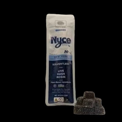 Nyce - Blueberry | Live Hash Rosin Gummies | 10-Pack | 100mg THC Berry bliss meets full-spectrum fire with Nyce Blueberry Live Hash Rosin Gummies—a 10-pack of potent, solventless edibles made for flavor lovers and true cannabis enthusiasts. Infused with 100% live hash rosin from fresh frozen flower, each gummy delivers 10mg of THC and a true-to-strain experience that’s clean, powerful, and long-lasting. Packed with juicy, natural blueberry flavor, these solventless gummies offer a perfect balance of body relaxation and cerebral uplift. Whether you're looking to unwind after a long day, boost creativity, or enjoy a mellow mood, Nyce Blueberry Gummies have you covered—discreet, delicious, and dialed in. Why You’ll Love Them: 10-pack with 10mg THC per gummy (100mg total) Infused with live hash rosin from fresh frozen cannabis Rich in terpenes and full-spectrum cannabinoids Delicious real blueberry flavor with no bitter aftertaste Ideal for evening relaxation, social vibes, or creative focus
