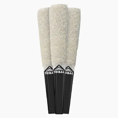 Tribal Trifecta. When your journey is of the utmost importance, you equip yourself with the best gear. No fake terps, no distillate. Tribal Trifecta G Mint Infused Pre-rolls are made of triple infused Gelato Mint flower with matching liquid diamonds, terp sauce and dusted with bubble hash. Rolled in a premium hemp paper and finished with a glass tip. Liquid Diamonds + Terp Sauce + Bubble Hash, Trifecta!