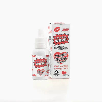 Super Wow has gone wild with our new Oooh! Wow drops. With a sensual berry flavor and a splash of THCV to crank up the heat, these drops are your new foreplay companion. A high potency, high sensation option to partner with any intimate moment, and an intimate treat to share with any partner. Get your "Oooh!" on with this playful new flavor. 1000mg THC + 100mg THCV per bottle 17mg THC + 1.7mg THCV per dose (0.5ml)