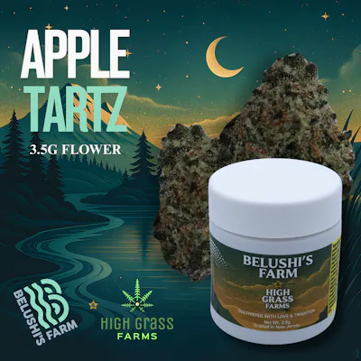 Apple Tartz from Belushi Farms is a flavorful, premium 3.5g flower that blends eye-catching bag appeal with a rich, dessert-inspired profile. The buds are dense and resin-coated, featuring vibrant greens with hints of purple and bright orange pistils, showcasing careful cultivation and top-tier genetics. The terpene profile leans into crisp apple sweetness layered with creamy pastry notes and a subtle gassy finish. On the inhale, you’ll get a smooth burst of tart apple and sugar, followed by a slightly earthy, dough-like exhale that rounds out the experience. Apple Tartz delivers a balanced high that starts with a light, euphoric head buzz before settling into a relaxed, comfortable body feel. It’s a versatile strain that works well for social sessions, creative moments, or simply enjoying a flavorful, feel-good smoke.