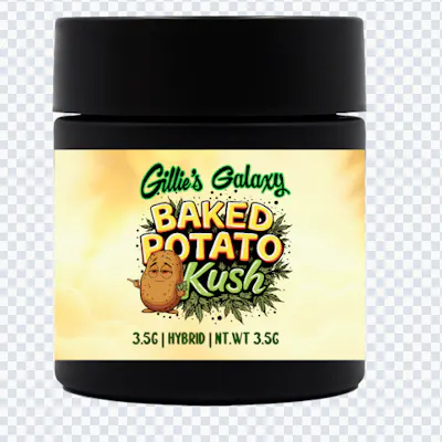 Baked Potato Kush from Gillie’s Galaxy is a uniquely named strain with a classic kush-forward profile. Expect earthy, savory aromas with hints of spice and gas, reminiscent of traditional indica strains. The flavor leans into rich earthiness with a slightly nutty and herbal finish. It’s a smooth, full-bodied smoke that delivers a nostalgic kush experience. Effects are deeply relaxing and body-heavy, making this strain ideal for evening use or winding down after a long day. Expect a calming, couch-ready vibe.