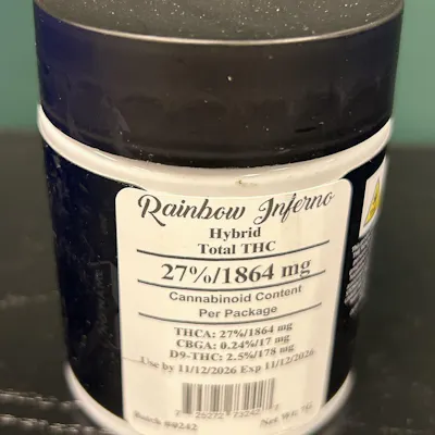 Experience vibrant flavor and balanced effects with Heady Tree’s Rainbow Inferno, a top-shelf hybrid flower crafted for those who want premium quality in a larger 7g (quarter ounce) format. Known for its striking terpene profile and smooth, potent smoke, Rainbow Inferno delivers a versatile high suited for both daytime focus and evening relaxation. This hybrid stands out with a bold aromatic blend of sweet fruit, citrus, and earthy gas, creating a complex and memorable flavor. Expect uplifting, creative energy on the front end, followed by a calming body melt that never feels overpowering. It’s an ideal choice for hybrid fans who want a strain that performs well in any setting.
