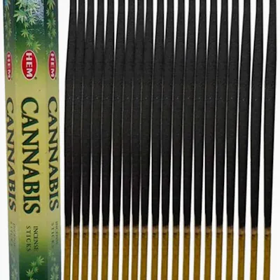 The HEM Cannabis Incense 8 stick pack is a popular, affordable product made in India from natural ingredients that produces an earthy, musky aroma to promote relaxation and help neutralize odors. The scent does not smell like marijuana, but rather offers a unique, herby fragrance. Product Details Scent Profile: The fragrance is described as a lush, musky, earthy scent with a little bit of tang and sweet notes. Reviewers note that it smells nothing like actual cannabis/marijuana but has a pleasant, herby smell. Purpose: It is primarily used for aromatherapy, smudging, meditation, and general home fragrance to promote deep relaxation, relieve stress, calm nerves, and balance emotions. It is also marketed as an effective odor neutralizer. Ingredients and Production: The incense sticks are hand-rolled in India using a blend of natural ingredients, including select woods, florals, essential oils, and resins. They contain no animal by-products and no child labor is used in their production. Specifications: Quantity: Each pack contains approximately 8 sticks. Length: Sticks are approximately 9 inches long. Burn Time: Each stick has a burn time of approximately 30 minutes.