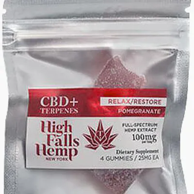 High Falls Hemp | Relax/Restore 1:25 Pomegranate Gummies | 1mgTHC:25mgCBD | 4pk