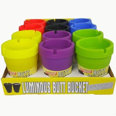 Butt bucket ashtray in assorted colours. See in store for selection.