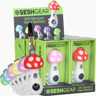 The SeshGear Mushroom 510 Vape Battery combines playful design with dependable performance, making it a standout choice for any display. Featuring a whimsical mushroom-shaped top and a powerful 550mAh battery, this device is compatible with most standard 510-thread cartridges. The convenient preheat function and variable voltage settings allow users to tailor their vaping experience for optimal flavor and vapor production. Each display includes six assorted colors, perfect for catching customers’ attention and adding variety to retail shelves.