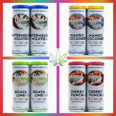 4 pack of Delta 9 THC infused seltzers. At 5mg each these are the perfect refreshing drink for summer.