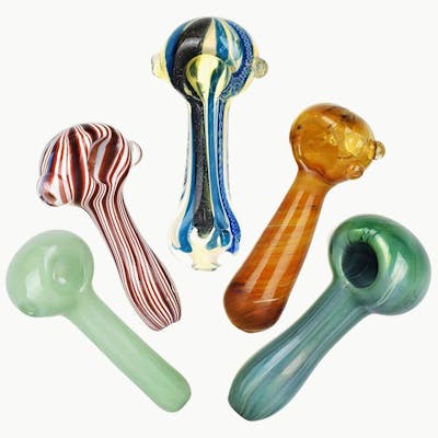 These Earth Movement Glass Spoon Pipes are crafted with a wide variety of earth-tone designs featuring waterfall blues, grassy greens, rich honey hues, and more! Made of durable borosilicate glass, each pipe is unique and measures approximage 3.75 inches to 4.5 inches (9.5cm to 11.4cm) long.
