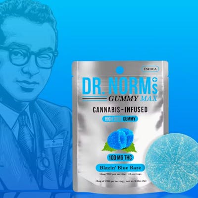 Dr. Norm's MAX Blazin Blue Razz Indica Gummy 100mg