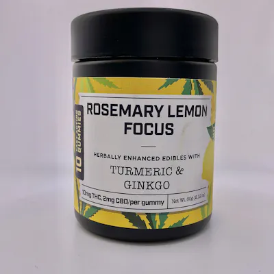 The Rosemary Lemon Focus fast-acting gummy is made with organic ingredients and flavored with real lemon juice and real rosemary extract. Enhanced with organic herbs of turmeric & ginkgo and an added minor cannabinoid of 2mg of CBD for added focus!