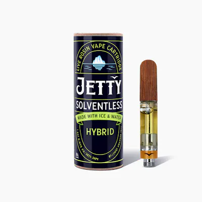 Sweet vanilla cookie flavor with minty chocolate and pepper, plus a giggly lift that settles into calm, cozy relaxation. Jetty Solventless is the most-awarded vape since 2020. It is the cleanest oil available, made from cold water hash that’s extracted using only ice and water. Our unique filtration process removes excess fats and waxes increasing purity (and THC %) while keeping all the tasty terpenes. The result: a light, golden oil. Look for the Jetty signature wood tip and our premium cartridges which work with any 510-thread battery.