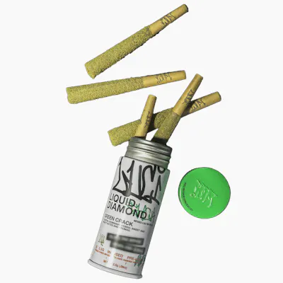 Get ready to light up your day with Luci’s Green Crack Liquid Diamond Infused Pre-Rolls - a five-pack of powerfully uplifting 0.5g joints crafted for clarity, creativity, and unstoppable energy. Each pre-roll features New York–grown Green Crack flower, infused with pure liquid diamonds and terpene-rich oil, then finished with a dusting of kief for that extra sparkle. Bursting with bright citrus and earthy sweetness, Green Crack is a hybrid-leaning sativa known for its energizing, mood-boosting effects that sharpen focus and elevate your vibe. Perfect for a productive morning, a hike with friends, or sparking inspiration any time of day - these pre-rolls deliver clean, potent, and flavorful hits that keep you lit from the first puff to the last.