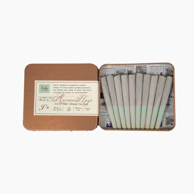 Power your day with the Amnesia Haze Hash-Infused Pre-Roll 10-Pack by Ruby Farms, a premium collection of 0.5g sativa pre-rolls infused with potent solventless hash. Designed for daytime focus and creative flow, each pre-roll offers a smooth, terpene-rich experience with a long-lasting cerebral high. Strain Profile: Amnesia Haze (Sativa) Amnesia Haze is a legendary sativa strain celebrated for its citrus-forward aroma, earthy undertones, and mentally uplifting effects. Expect an energetic, euphoric high that’s perfect for mornings, outdoor activities, or staying productive throughout the day.