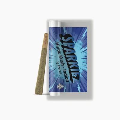 SPARKIEZ HINDU KUSH INDICA 1-Gram Single Preroll: We do, you do, we all want the hindu! Spark up on Sparkiez premium pre-rolls. Sparkiez Hindu Kush Indica 1G Preroll is one of a kind to help ease your mind and body from a long day and leave you feeling a deep sense of calm. Earthy, woody and slightly sweet, this pure Indica strain will have you feeling blissfully relaxed, restful and at peace. We take 1 gram of beautiful indoor flower, no trim, no shake, and roll it into 1 ready to spark preroll. Ready. Set. Get your Sparkiez on! Each preroll contains 1G of flower. (License# CDPH10004780) Barcode: 705180374223