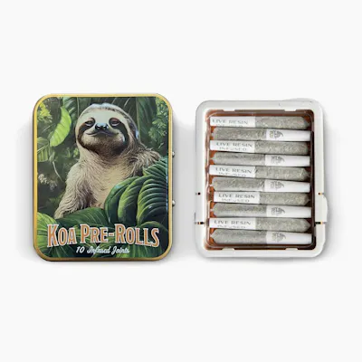 Experience blissful harmony with Koa Pre-Rolls. Our carefully crafted mini pre-rolls combine top-shelf flower and terpene-rich live resin, guaranteeing a minimum of 35%+ THC for a powerful and enjoyable journey. Achieve the ultimate state of relaxation and euphoria as this hybrid strain uplifts your mood and soothes your body and soul, offering a perfect balance of tranquility. Koa prioritizes natural ingredients. Our pre-rolls feature premium indoor flower, free from artificial or botanical terpenes. Each pack contains 10 [.35g] perfectly rolled mini pre-rolls, accompanied by a stylish aluminum carrying case for secure and convenient consumption, anytime, anywhere Weight: 3.5g (License No. C11-0000340-LIC)
