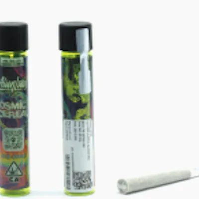 "Cosmic Cereal comes through with dense, light lime green buds buried under a thick layer of frost, with pale rusty pistils scattered throughout. The nose hits sweet whipped cream and sugar-coated cereal right away, backed by baked goods and a nutty, earthy haze. The flavor follows with creamy cereal sweetness on the inhale, then shifts into spicy earth and a cookie dough finish. The effects are heavy and unapologetic, sinking into the body fast and locking you into a calm, couch-bound zone. C11-0001367-LIC"