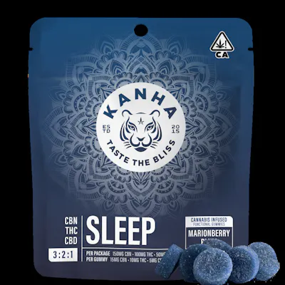 *150mg CBN x 100mg THC x 50mg CBD per bag* Dreams are sweeter with our Marionberry Plum 3:2:1 SLEEP blend. Formulated with CBN, THC, CBD, enhanced with antioxidant rich goji berry and sweetened with honey which contains tryptophan, these sleep gummies gently relax you while melting away the day's stress for a deep, restorative slumber. Instructions: Eat 1 gummy. Onset starts around 5-15 minutes. Wait 60 minutes for full effect. Keep in a cool, dry place. Avoid temperatures over 75°F. Ingredients: Tapioca Syrup, Cane Sugar, Water, Gelatin, Agar, Locust Bean Gum, Carnauba Wax, Natural Flavor, Citric Acid, Malic Acid, Natural Color, VESIsorb Nanotechnology, Natural Indica Terpenes (License No. CDPH-10002689)
