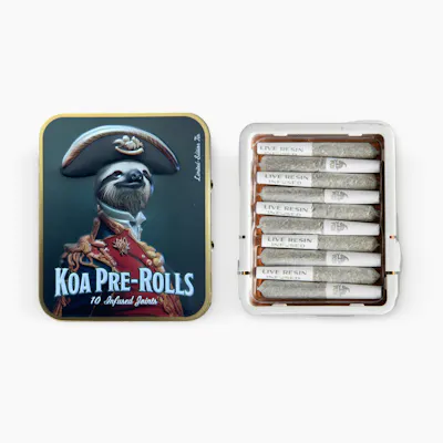 Experience blissful harmony with Koa Pre-Rolls. Our carefully crafted mini pre-rolls combine top-shelf flower and terpene-rich live resin, guaranteeing a minimum of 35 %+ THC for a powerful and enjoyable journey. Achieve the ultimate state of calmness as this indica strain slows things down and soothes your body and soul. Koa prioritizes natural ingredients. Our pre-rolls feature premium indoor flower, free from artificial or botanical terpenes. Each pack contains 10 [.35g] perfectly rolled mini pre-rolls, accompanied by a stylish aluminum carrying case for secure and convenient consumption, anytime, anywhere! Weight: 3.5g (License No. C11-0000187-LIC)