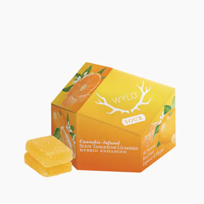 Wyld's Sour Tangerine Hybrid Enhanced gummies are made with real fruit and enhanced with botanical terpenes that assist in creating both euphoric and playful experiences, with a tart, punchy twist. Euphoric + Playful