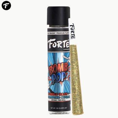 Fire up the flavor of summer with Bomb Pop — an old school burst of red, white, and blue delight. This sweet and tangy preroll captures the iconic taste of the classic popsicle, blending cherry, citrus, and blue raspberry into a mouthwatering symphony of flavor. Bomb Pop delivers a balanced hybrid experience that's perfect for lifting your mood. Whether you're the life of the party, chilling at a barbecue, or winding down after work, this flavorful preroll brings the fun and keeps the vibes breezy. Ideal for seasoned smokers seeking a deeper, more intense elevation, Bubble Hash x Diamond Sugar brings unmatched clarity, relaxation, and potency to your day or night. Whether you're unwinding or chasing a bold new vibe, this is the elevated infusion experience you've been waiting for. Elevate your session with Bubble x Diamond infusion, Forté’s signature line of THCA and Bubble Hash-infused prerolls, crafted for the true connoisseur. Each preroll begins with 100% premium, single-source, indoor-grown, non-remediated organic flower, ensuring a clean, rich flavor and smooth burn. Infused with pure THCA diamonds and solventless bubble hash, this line delivers a potent party experience that preserves the full-spectrum effects of flower. Our bubble hash is produced in-house at our Harrison Township facility using an industry-leading 28-degree water extraction process — one of the purest methods, relying solely on ice and flower. The result is a powerful yet natural high, combining the euphoric intensity of THCA with the purity and richness of traditional hash, offering a deeply satisfying session for seasoned consumers seeking a truly novel experience.