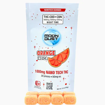Sleep deeper. Unwind fully. Wake up renewed. Moon Dustβs Night Time 1:1 + CBN Nano Gummies in Orange Indica bring you a powerful, fast-acting nighttime formula designed for smooth relaxation and restorative rest.
