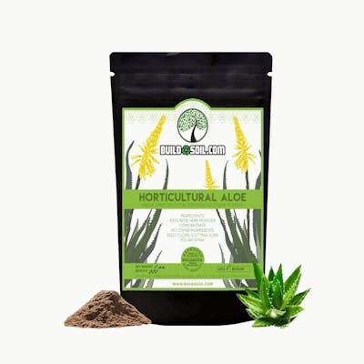 BuildASoil's New Horticultural Aloe! Key Points: The Lignin's in Aloe Vera allow the plants to utilize the nutrient and moisture supply more efficiently with less stress on the plant. Plants grow healthier, larger and greener due to the plants ability to better use the UV rays from the sun allowing photosynthesis to take place more efficiently. Does not alter the genetic makeup of the plant. Organically grown product. Proven and documented by Texas A&M. The new aloe vera stabilization process is critical to obtain the result listed here. The first patent I was awarded was the hand filleted method. The rind was discarded and only the fillet was used. After 38 years it was discovered that a large percentage of the actives in the aloe vera plant were being thrown away with the rind. In 1962 I developed and patented the whole leaf method to stabilize the gel. Clinical studies showed this process to be superior to the hand filleted method of processing. In 1984, I received a third patent to process aloe vera to create a product to stimulate plant growth by processing the aloe vera leaves differently. It should be noted that this whole leaf aloe vera product can not be consumed orally. It is for plants only. It is hoped that this background information assists you in becoming more knowledgeable about our company and the benefits that can be derived from the use of our aloe product. Useful Info It is important that workers wear rubber gloves when handling the freeze dried powder and the concentrated liquid made from the powder due to the laxative effect. It is not necessary once the product is diluted to a solution. How to Use 1 Ounce makes 10-25 Gallons of Potent Foliar Spray. Horticultural Use 1 tsp per gallon 100 gr per 33 gallons 1 kg per 330 gallons seed soak for 4-12 hours plant cutting soak for 4-12 hour foliar spray in morning before full sun Acreage Use 1 kg will treat 2.5 acres with 4 full sprays 100 gr per 33 gallons water foliar 1 acre