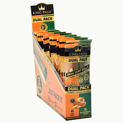 Discover new and delicious flavor combos with these King Palm Hand Rolled Dual Packs. Containing one pre-roll of each flavor--Pine Drip and Watermelon