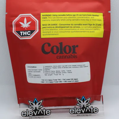 Color's Chromatica is an Indica-dominant hybrid cross of God Bud and OG Kush, with dense green nugs and silver metallic trichome sheen. Chromatica produces a fresh & fragrant earthy sweet aroma with notes of fruit, earth and musk. Our elevated growing practices, including full temperature and humidity control and hang-drying, guarantee a consistent and enjoyable smoking experience. Cultivated with care and nitrogen packaged for maximum freshness.