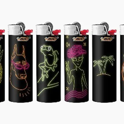 BIC Lighters launches a new special edition line, the Neon Series. The bright and noticeable neon colors are intended to pop off a black background. The whimsical designs take a cue from tropical getaways and feature everything from a sunglass-wearing dog to a down-home alien visitor. As with all BIC Maxi Lighters, the Special Edition Neon Series is long-lasting, reliable and 100% quality inspected.