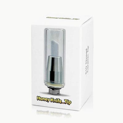 Description: Honey knife is an electric dab tool specially designed for dab enthusiasts, makes it easier to handle sticky or messy concentrates, with this honey knife, you can load your favorite concentrate to your banger or coil without any residue or waste. Ultra-thin ceramic tip: The ultra-thin tip of the honey knife is made of high-grade ceramic material, which has perfect conductivity and can easily cut any concentration of wax, just press and hold on the button, your favorite concentrate will easily drop into your rigs. 510 Thread Battery: Honey Knife combined with the Tip and 510 Thread battery, can be freely connected to other devices supporting 510 threads. Diamond light: A diamond-shaped light around the buttons makes the temperature mode visible and dabbing in the dark easy. 4 Modes of Setting: 4 adjustable voltage range from 2.7v-4.2v, suitable for concentrate with different melting points, 3 times quickly click to switch the temperature mod, Green light is 2.7v, Blue light is 3.2v, Yellow light is 3.7v, and Red light is 4.2v.