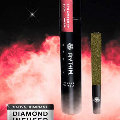 A sativa-dominant strain known for keeping focus on-point, Strawberry Sour Diesel’s flavor profile is full-on strawberry bliss, with piney, peppery notes that stimulate the senses. Remix pre-rolls feature RYTHM premium indoor flower double infused with THCa diamonds and kief for maximum potency and fine-tuned with 100% natural terpenes. -- Explore your taste in premium cannabis with RYTHM's curated lineup of expertly cultivated, award-winning strains.