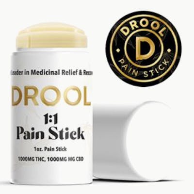 Drool The Leader in Medicinal Relief & Recovery 1000mg 1:1 CBD/THC Pain Stick The spot-specific transdermal balm is formulated to allow for much deeper penetration than traditional cannabis topicals. Contains: Shea Butter, Beeswax, Coconut Oil, Arnica Flower, Eucalyptus essential oil, Lavender essential oil, THC, CBD.