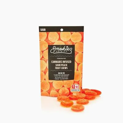 1000mg 20pk* *This % may represent an aggregate of THC/CBD, THCa/CBDa, THCb/CBDb within the product. Consumers should review the actual product label for exact % of THC/CBD. DESCRIPTION Smokiez delicious Peach Fruit Chews. Enjoy the sense of a freshly picked peach right off the tree. Our company is committed to the highest quality Edibles that offers a great taste made with our proprietary High Clarity Extract™. Our Gummiez, Fruit Chews, and hard candies are 100% Gluten free. The majority of our Chocolates are also gluten free. The only products that are not Gluten Free are our White Chocolate Cookies and Cream.