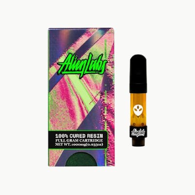 Alien Labs – Area 41 × BK Satellite Cured Resin Cartridge (1g, Hybrid) A premium 510-thread cured resin vape combining Area 41’s lemon-fuel gas and BK Satellite’s sweet, earthy spice. Expect a smooth, citrus-diesel flavor with hints of fruit and pine. Effects deliver a balanced high — uplifting and creative upfront, easing into calm body relaxation. Perfect for daytime or evening balance with signature Alien Labs potency.