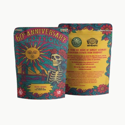 This special 60th Anniversary Edition Blue Dream flower comes from True Mom & Pop Farms, under the trusted umbrella of Humboldt Family Farms—a collective rooted in legacy and sustainability. Known for its high-quality, sun-grown cannabis from California’s Emerald Triangle, this pre-pack features hand-trimmed, small-batch buds cultivated with care. Blue Dream is a legendary strain that blends Blueberry (Indica) and Haze (Sativa) genetics, delivering a balanced and uplifting experience. This edition honors six decades of cannabis culture and craftsmanship, packaged in a generous 4.2 grams for those who value premium quality and legacy farming.