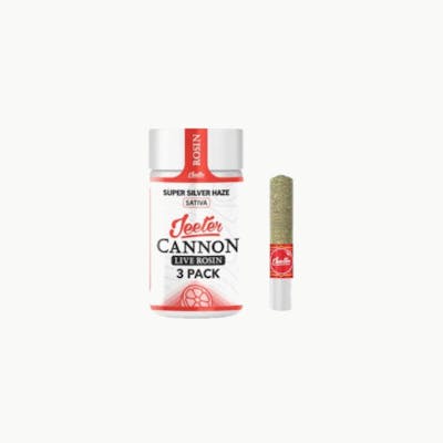 The Jeeter Super Silver Haze Live Rosin Baby Cannon 3-Pack is a "solventless powerhouse" that combines one of the most famous Sativa lineages in history—Skunk, Northern Lights, and Haze—with the refined purity of artisanal Live Rosin. By utilizing a ceramic cooling tip and chemical-free extraction, Jeeter delivers a smooth, gourmet smoke characterized by notes of sour citrus, spicy herbs, and earthy pine. Testing near 44% THC, this pack provides a vibrant, creative, and joyful cerebral rush that is the premier choice for high-tolerance smokers who want a potent, functional daytime high without any chemical additives.