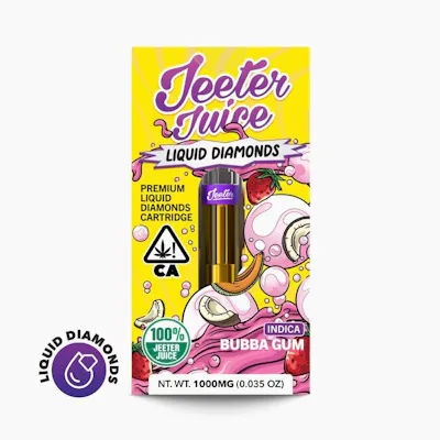 JEETER brings you BUBBA GUM with a indica twist in their LIQUID DIAMONDS CARTRIDGE [1G] BUBBA GUM. Dive into this remarkable cartridge that’s perfectly crafted for a smooth experience. Packaged conveniently in 1 g, it's an ideal choice for those who appreciate quality.