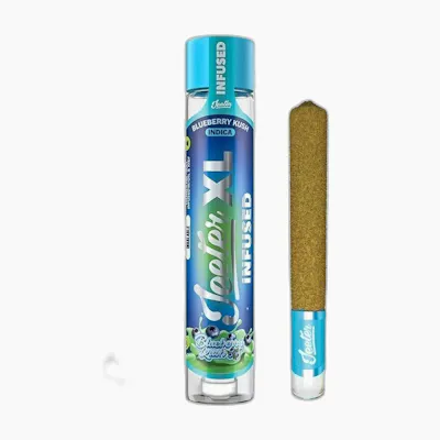 Blueberry Kush Jeeter XL Infused Rolled Joint: 2g Joint | Indica | 35.20% THC Indoor Grown Infused with Distillate Oil & Kief\n\nBlueberry Kush is an indica strain made by crossing Blueberry and OG Kush. This strain produces effects that slowly brings on a heavy body sensation, relaxation and relieves stress. Blueberry Kush is a popular choice for evening use, as its dreamy effects will float you into a deep sleep.