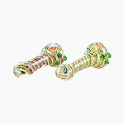 The LuvBuds 3.5" Fumed Rainbow Ribbon Spoon Pipe is a pocket-sized, hand-blown borosilicate glass pipe featuring vibrant rainbow ribbon accents and a color-changing fumed finish. Built with a spoon-style bowl, side carb hole, and Black Hole Bowl Technology for cleaner hits, it’s perfect for on-the-go use and comes in assorted, one-of-a-kind colors.
