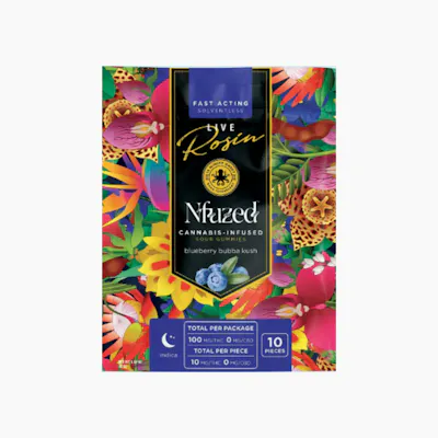 A deeply relaxing indica edible inspired by the classic Bubba Kush cultivar, these gummies blend NFuzed’s smooth, euphoric cannabinoid profile with a rich blueberry flavor. Expect a slow-building body melt, mellow mood lift, and gentle sedation perfect for unwinding at night. Great for stress relief, easing tension, and deep rest.