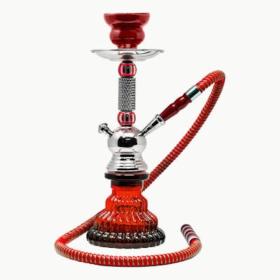 A gorgeous one hose hookah, comes with silicone/rubber hose with freely bendable wooden handles. Height of this hookah is 12 inches and weight is approximaely 645Gm. This hookah set comes with red washable ceramic bowl, red silicone/rubber hose and wooden handles Cost reduced for slight notch in wooden handle.