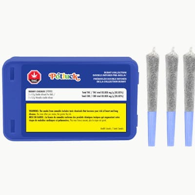 A juicy knockout from Potluck’s Burst Collection, Berry Cherry Burst is a double-infused pre-roll packed with sweet cherry and berry terpenes, THC isolate, and finished with a diamond coating for extra punch. Crafted with our proprietary dry-infusion technology, Potluck Burst Infused Pre-Rolls are the best burning infused pre-rolls with a slow, smooth, and clean burn and no clogs—just bold flavour and high potency.