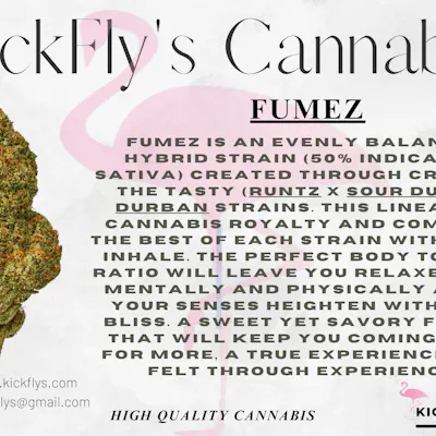 27.44 % If you're on the hunt for a full-bodied high with soothing effects and a deliciously sweet yet savory flavor, look no further than Fumez to get you everything you need and so much more. The Fumez high will come blazing in quickly, lifting you into a place of pure calming happiness. You'll feel totally relaxed, both mentally and physically, as your body slowly begins to melt into the couch, leaving you feeling utterly immovable and sedated. Eventually, you'll find that you're starting to drift away into a long and peaceful sleep.