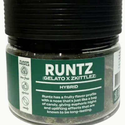 22.16 % Runtz has a fruity flavor profile with a nose that's just like a bag of candy, giving euphoric highs and uplifting effects that are known to be long-lasting.