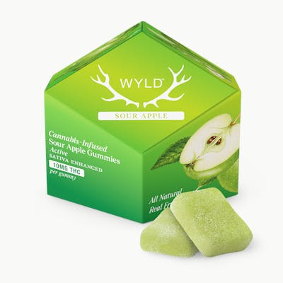 Wyld’s mouth-watering Sour Apple gummies are infused with THC and Sativa terpenes for a vibrant, uplifting high.
