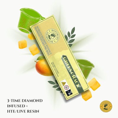 🌿 Green Crack – Diamond Infused Pre-Rolls Type: Sativa Flavor & Aroma: Citrus, mango, and earthy spice Effects: Focused, energetic, uplifting — ideal for productivity Description: Don’t let the name fool you — Green Crack is all about clean, energizing power. Infused with diamonds and distillate, this sativa hits hard and fast with sharp mental clarity and motivation. A perfect choice for daytime dispensary shoppers looking for something strong that keeps them moving. 🍊 Bright terpene profile with citrus punch 💎 Diamond infusion for extra intensity ⚡ Clear-headed, energetic high