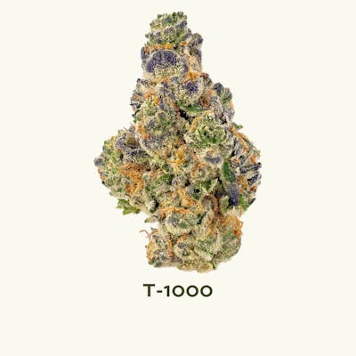 T-1000 (Purple Urkle x Triangle Kush) - Named after the villain in Terminator 2, this cut of T-1000 was bred by CSI Humboldt by combining the king of all Purples (Purple Urkle) with the high potency Triangle Kush and was hunted and selected by Archive in Portland. Due to Purple Urkle being a low yielder and lower tester, the goal of this union was to create a strain with the frame, weight, and power behind Triangle Kush while still presenting an old school “Purp” flavor, although a bit earthier and fuel forward. The flavor profile is best described as a grape or berry (depending on the batch) that has been aged in skunky oak or pine, providing a combination of fruit, earthy and skunky musk, and floral notes. Photo Disclaimer The photos shown on our menu are representative images of the strain and may not depict the specific batch available. For photos of the exact batch you are interested in, please contact your sales representative.