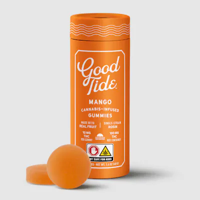 Vibe out poolside with Good Tide mango gummies. Naturally rich in myrcene, real mango makes an ideal match for our indica-leaning rosin. With naturally occurring terpenes and minor cannabinoids present in our solventless hash rosin, our mango gummies are dripping with relaxing plant properties to produce a mellow, laid back high. Strain: Slurricane