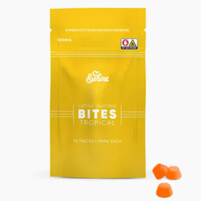 &Shine Sativa-Inpsired Tropical chews offer a delicious and purposeful blend of distillate oil and all-natural terpenes for a vibrant combination of flavor, quality and value.